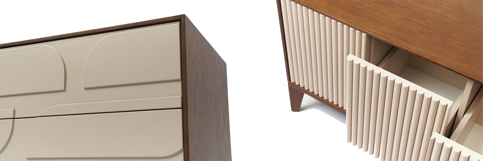 Комбинация натурального шпона снаружи и окрашенного МДФ внутри
